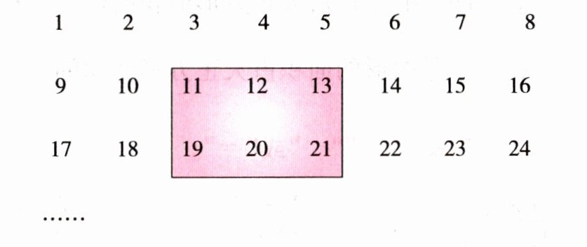 在这个数阵里,John用长方形框出两行六个数(图中长方形框仅为示意图),如果框出来的六个数的和是432,你知道John框出的这六个数中最小的那个数是多少吗?