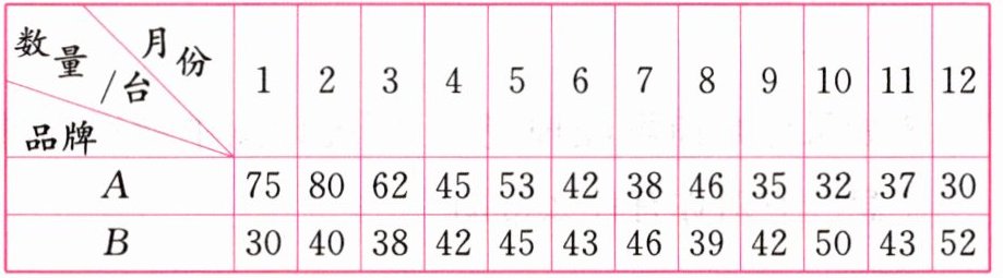 $A$品牌全年总销量$=75 + 80 + 62 + 45 + 53 + 42 + 38 + 46 + 35 + 32 + 37 + 30$