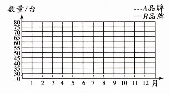 三 某家电商场A、B两种品牌彩电2013年月销售量统计如下表。请你根据表中的数据画出折线统计图。
