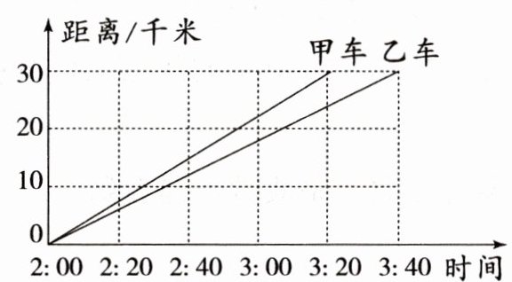 五 下图是一张甲、乙两车的行程图,仔细阅读后回答下列问题。