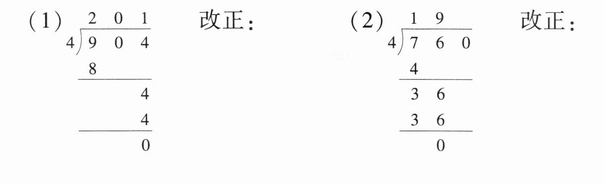 (2)原计算错误,被除数个位上的要落下来,商的个位写。