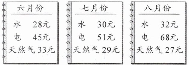 二、下面是王阿姨家六、七、八月份水、电、天然气的缴费单。