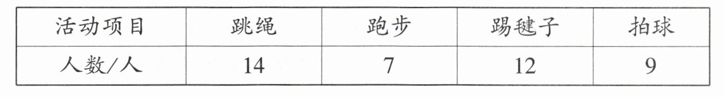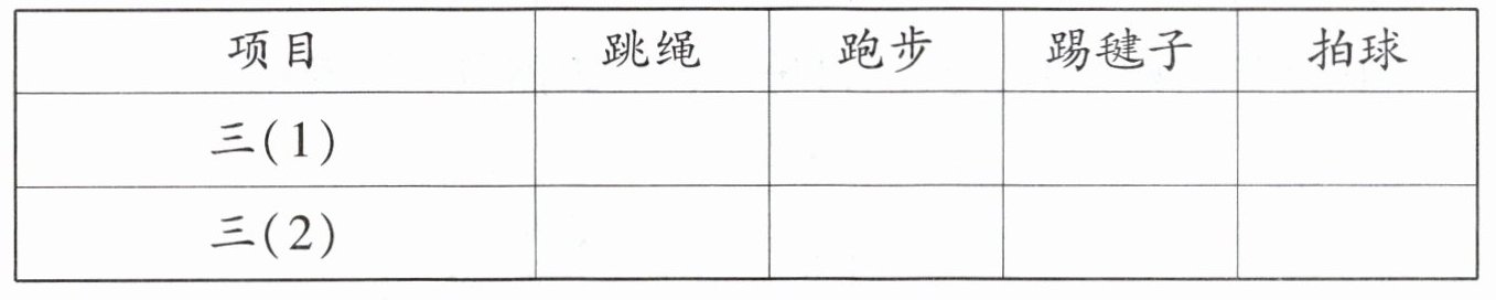 三、下面是调查双城区某校三年级两个班的同学最喜欢的体育活动情况统计表。