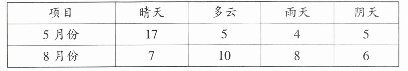 四、下面是某地区5月份和8月份天气情况统计表。