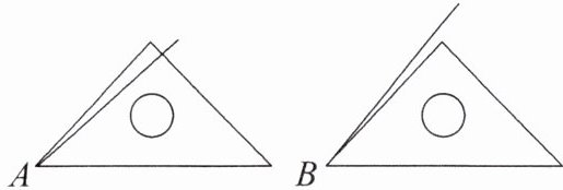 B [解析] 因为题图中三角尺的使用角度为 45°,所以∠A<45°,∠B>45°,所以∠A<∠B.