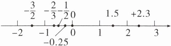 这些数在数轴上的排列从左到右依次为:$-\frac{3}{2}, -\frac{2}{3}, -\frac{1}{2}, -0.25, 0, 1.5, +2.3$。