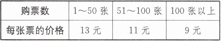 (1)班有48人,要想享受优惠,只需多买3张票.(48+3)×11=561(元),48×13=624(元).因为624>561,所以48人买51张票最省钱.