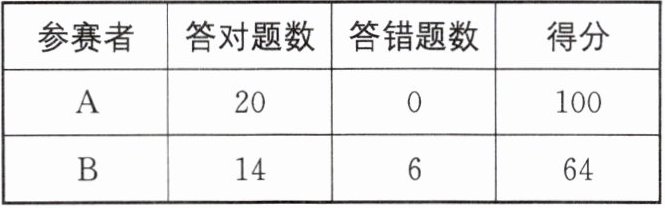 【练1】某校在科技节的系列活动中举行了“王中王”知识竞赛,共设20道选择题,各题分值及得分标准相同,每题必答,未作答视为答错.下表记录了其中2名参赛者的得分情况.