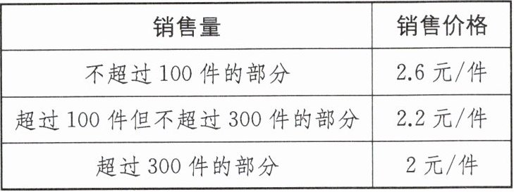 (2)解:设他购买这种商品x件.因为2.6×100=260<612<700,所以100<x<300.根据题意,得2.6×100+2.2(x-100)=612,解得x=260.答:他购买这种商品260件.