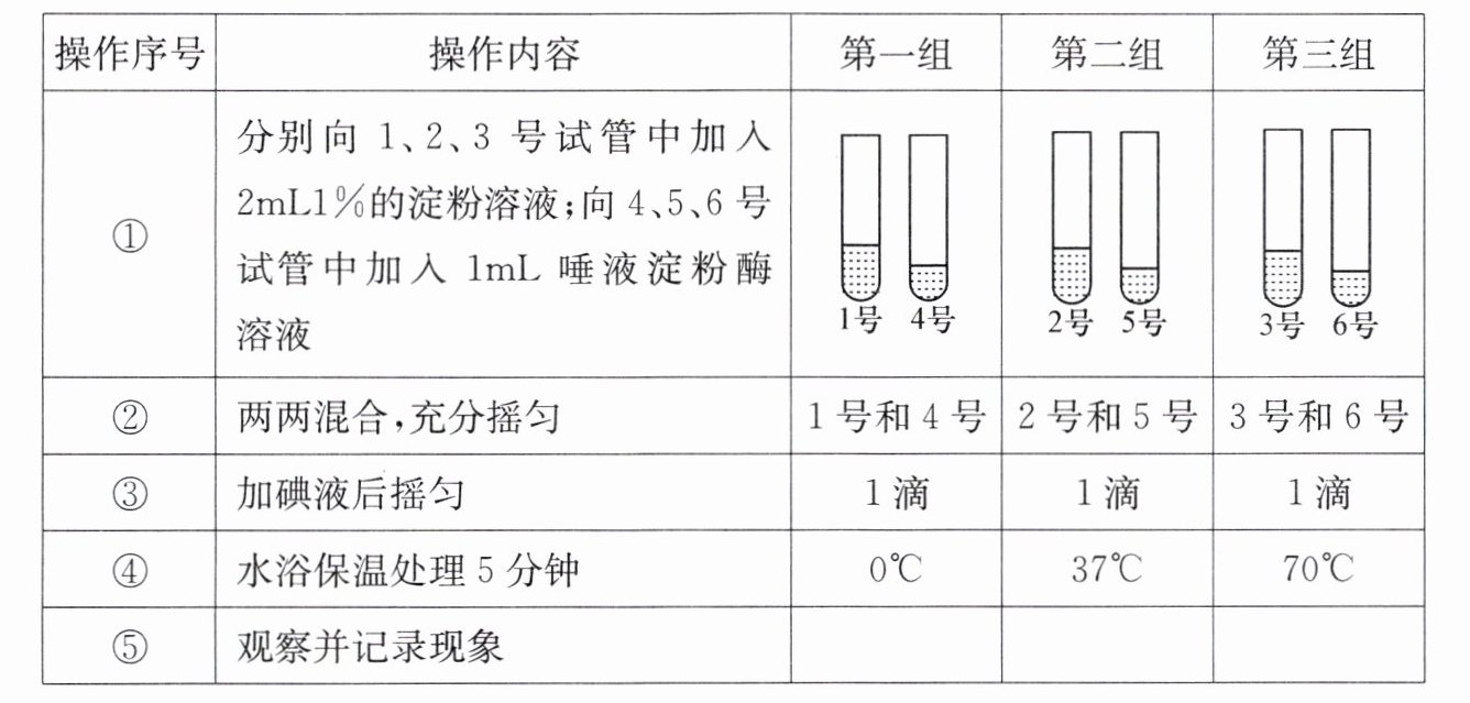 对唾液淀粉酶催化作用的影响。(2)将上述操作序号按正确操作步骤排序:①→