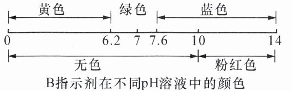 例2 有A、B两种酸碱指示剂,它们显示的颜色与溶液$pH$的关系如图,它们在甲溶液和乙溶液中显示的颜色如表,下列判断错误的是 (