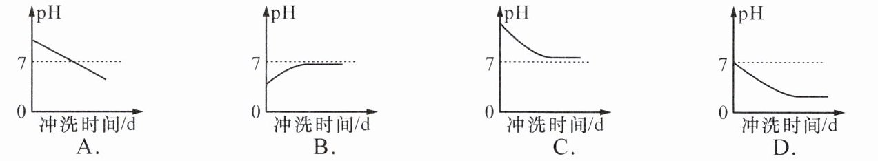 4. 我国土壤的分布情况大体是“南酸北碱”,南方农民引淡水冲洗以降低其酸性,在图中符合冲洗过程中酸碱性变化的曲线是 (