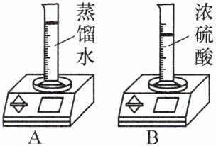 例3 如图所示,电子秤上的量筒中分别盛有蒸馏水、浓硫酸,放置一段时间。