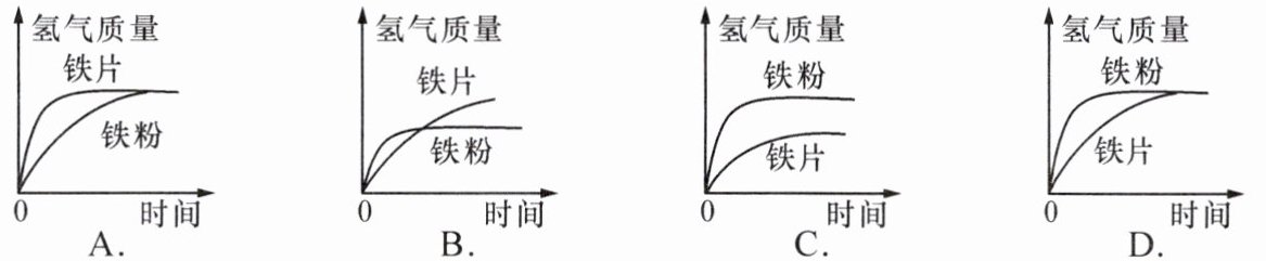 (3)取等质量的铁片和铁粉放入两支试管中,分别加入相同体积相同浓度的稀盐酸。