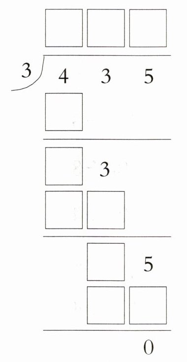 );个位上的 5 落下来和十位上的余数合并,再除以 3,对齐个位的商是(5