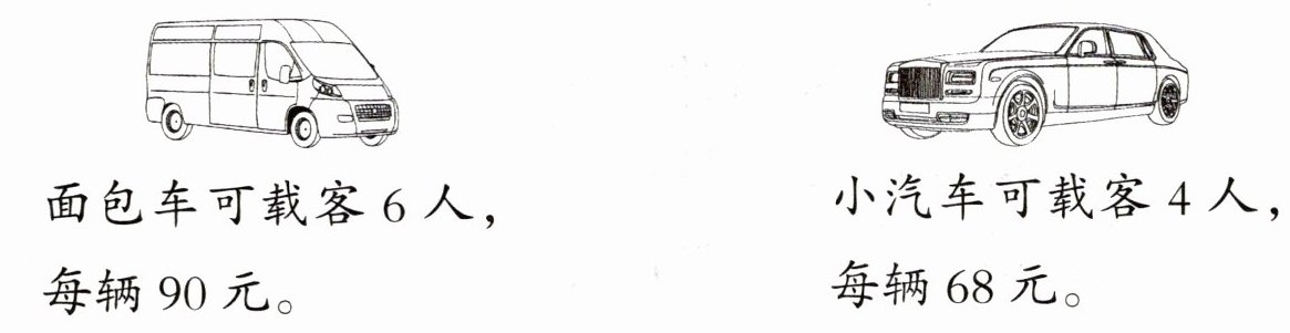 ① 如果都坐面包车,至少需要几辆面包车?