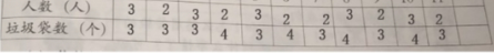 (2)你能根据上面的统计表大致算出平均每人每天用的垃圾袋数量吗?