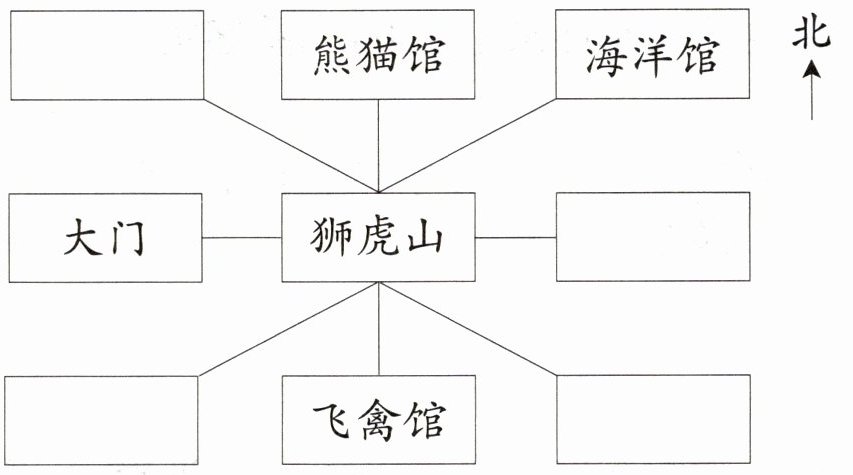 海洋馆$\xrightarrow{□ □ □ }狮虎山\xrightarrow{□ □ □ }$大门
