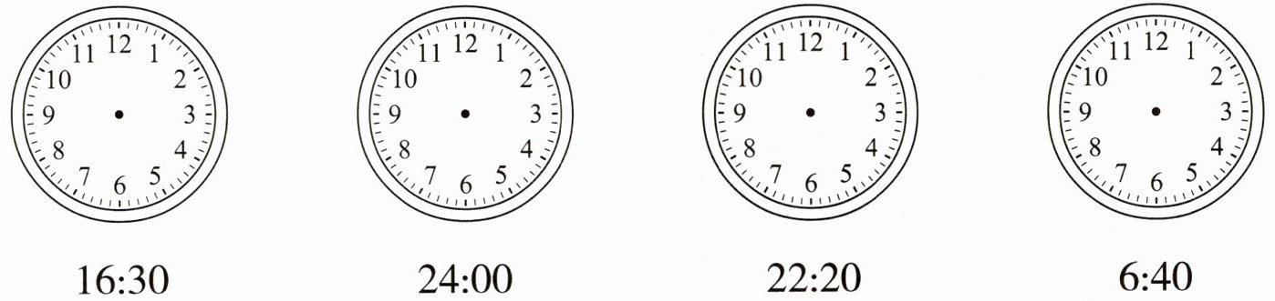 (2) 一场演唱会晚上 8:00 开始,晚上 9:40 结束,用 24 时计时法表示为 (