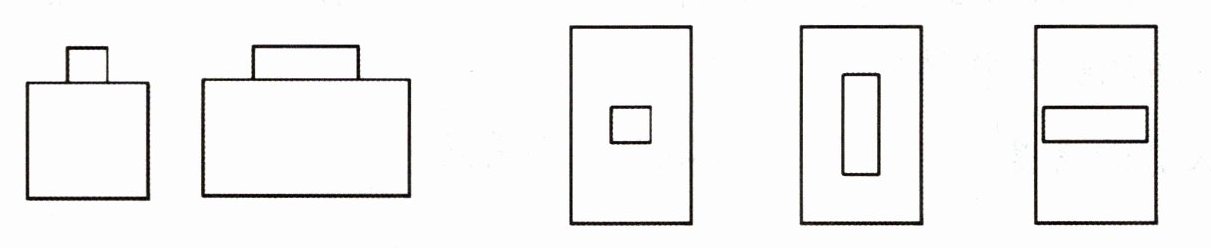 6 小刚把小盒子放在大纸箱上,分别从前面、左面观察后各画了一张图(如下)。如果他从上面看,能看到什么形状?请在对的括号里画“√”。