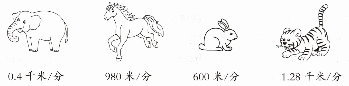 (1)下面是四种动物的奔跑速度,把它们的速度按从慢到快的顺序排序。