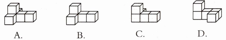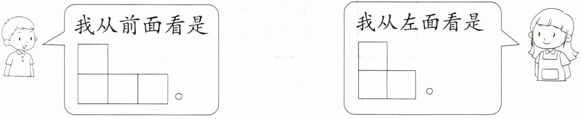 4 三个小朋友从不同方向观察同一个物体。请你根据他们的说法想一想,他们观察的是下面的哪个物体?(
