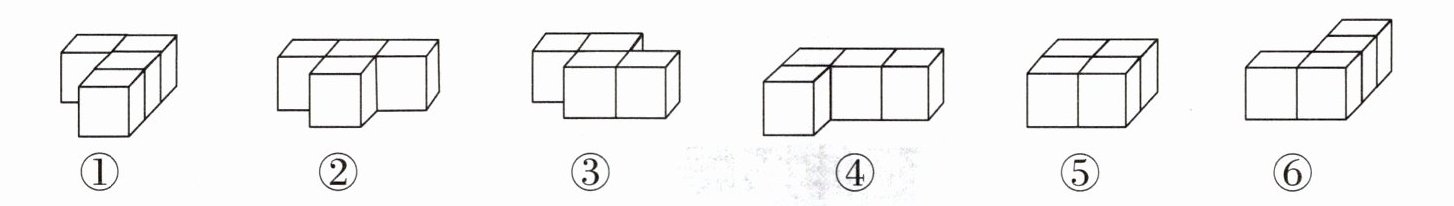 5 用同样大小的正方体拼搭出下面的六个立体图形,根据要求选择适当的序号填在括号里。