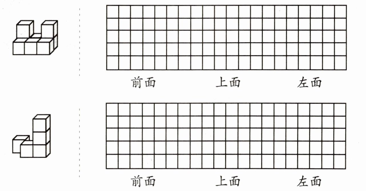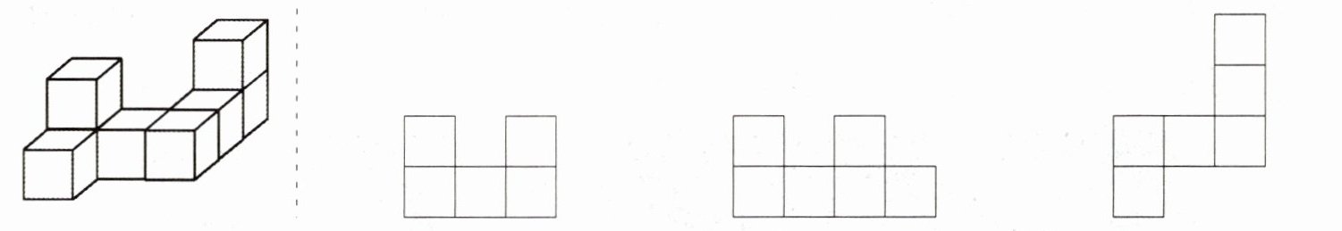 2 观察下图,右边的三个图分别是从什么方向看到的?填一填。