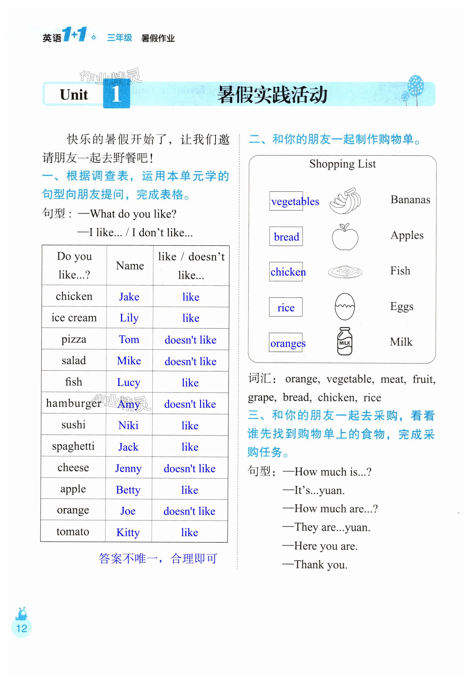 注:目前有些书本章节名称可能整理的还不是很完善,但都是按照顺序排列的,请同学们按照顺序仔细查找。练习册 2025年1+1暑假作业三年级英语 答案主要是用来给同学们做完题方便对答案用的,请勿直接抄袭。