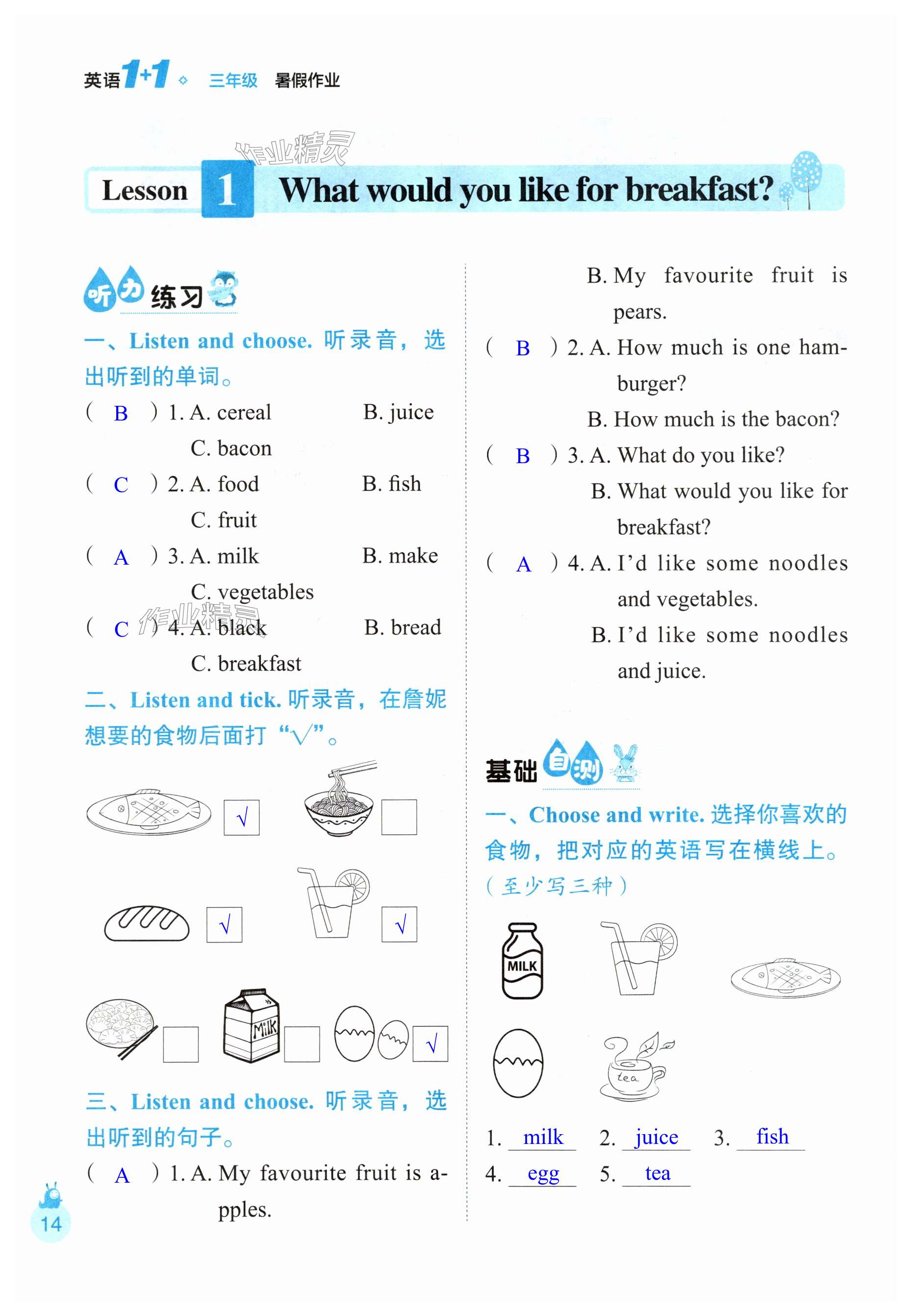 注:目前有些书本章节名称可能整理的还不是很完善,但都是按照顺序排列的,请同学们按照顺序仔细查找。练习册 2025年1+1暑假作业三年级英语 答案主要是用来给同学们做完题方便对答案用的,请勿直接抄袭。