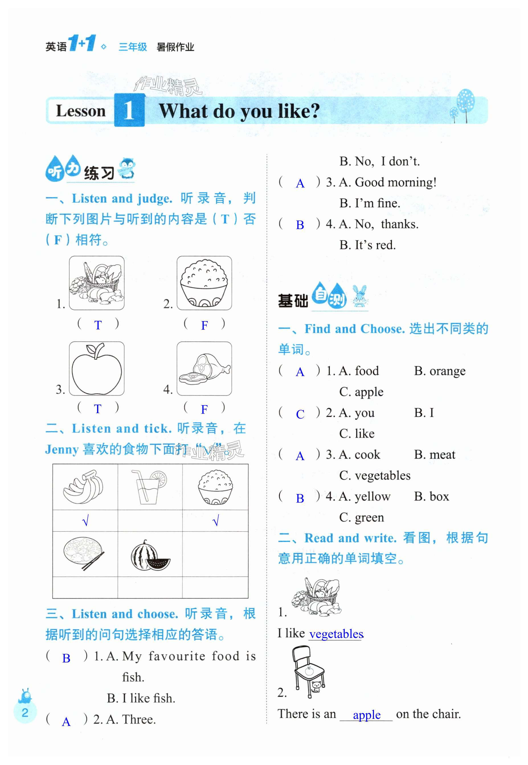 注:目前有些书本章节名称可能整理的还不是很完善,但都是按照顺序排列的,请同学们按照顺序仔细查找。练习册 2025年1+1暑假作业三年级英语 答案主要是用来给同学们做完题方便对答案用的,请勿直接抄袭。