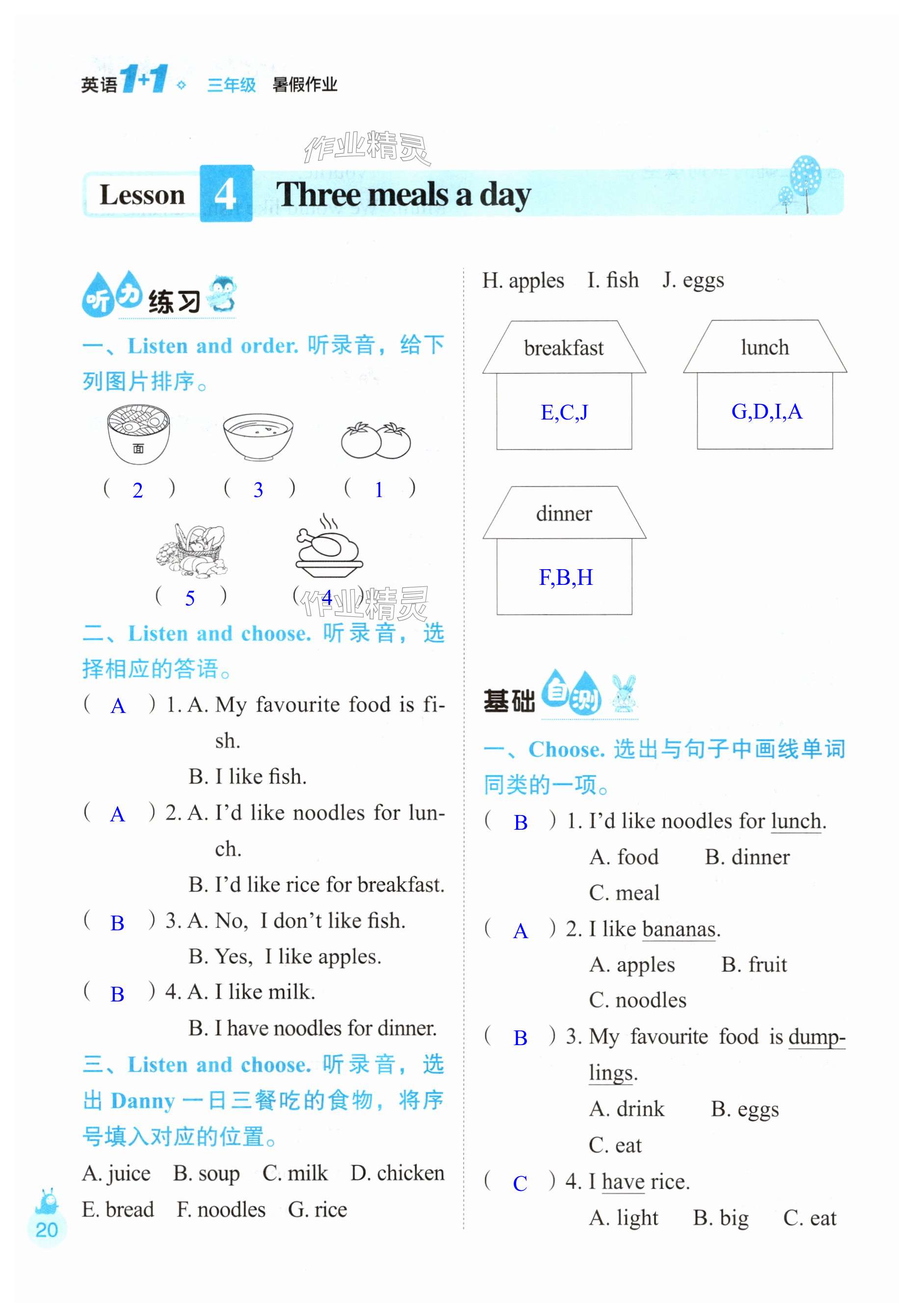 注:目前有些书本章节名称可能整理的还不是很完善,但都是按照顺序排列的,请同学们按照顺序仔细查找。练习册 2025年1+1暑假作业三年级英语 答案主要是用来给同学们做完题方便对答案用的,请勿直接抄袭。