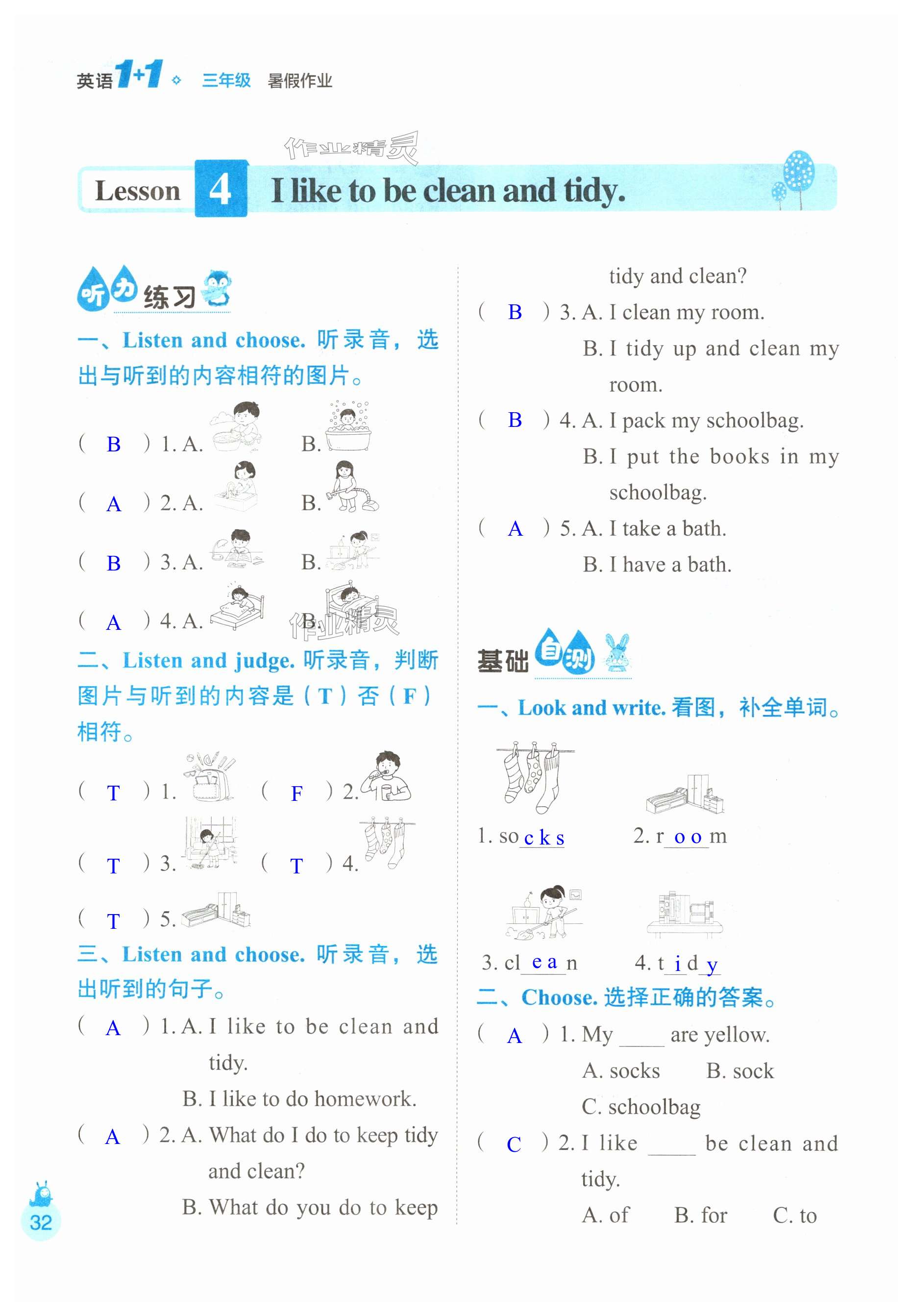 注:目前有些书本章节名称可能整理的还不是很完善,但都是按照顺序排列的,请同学们按照顺序仔细查找。练习册 2025年1+1暑假作业三年级英语 答案主要是用来给同学们做完题方便对答案用的,请勿直接抄袭。
