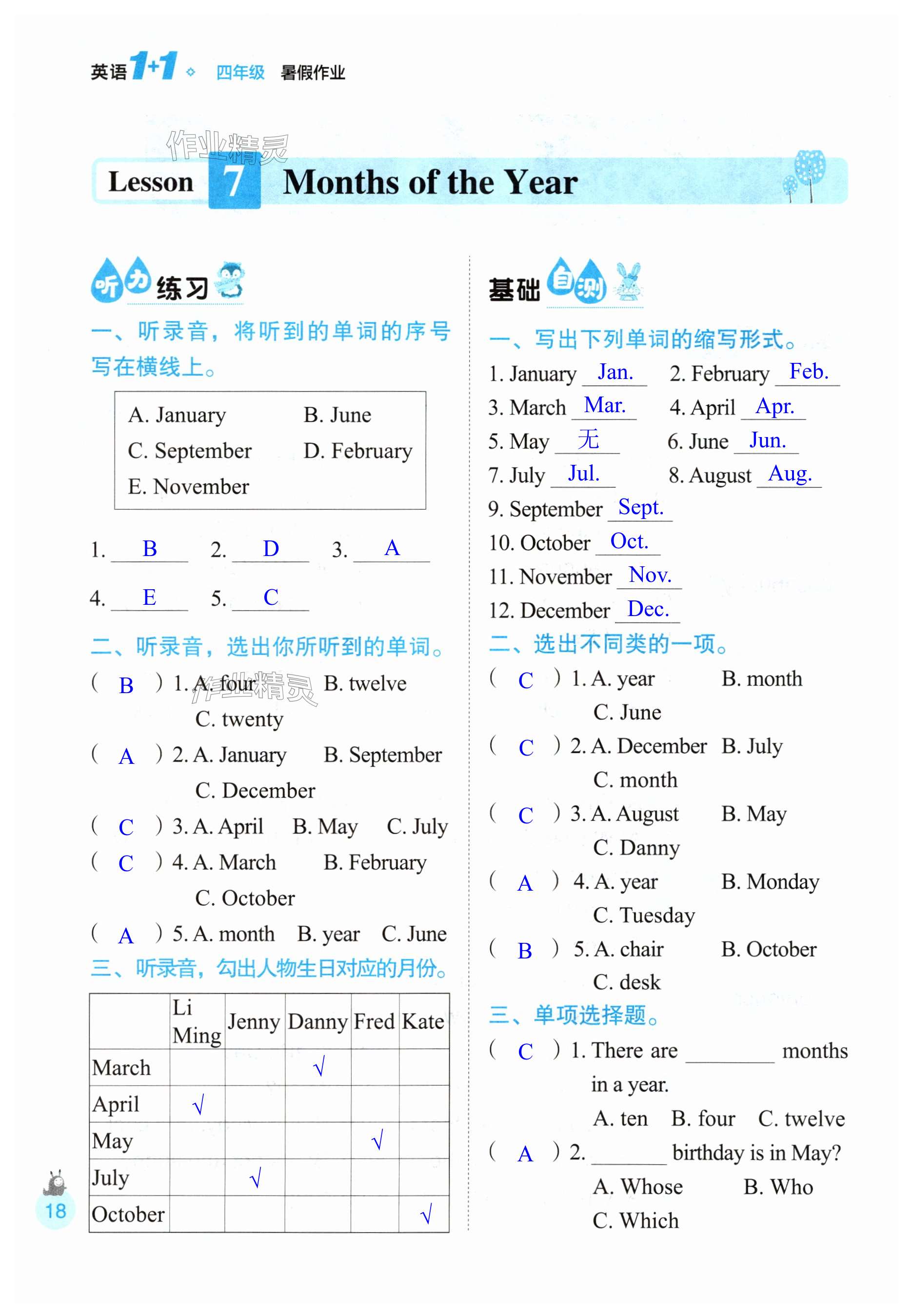 注:目前有些书本章节名称可能整理的还不是很完善,但都是按照顺序排列的,请同学们按照顺序仔细查找。练习册 2025年1+1暑假作业四年级英语 答案主要是用来给同学们做完题方便对答案用的,请勿直接抄袭。