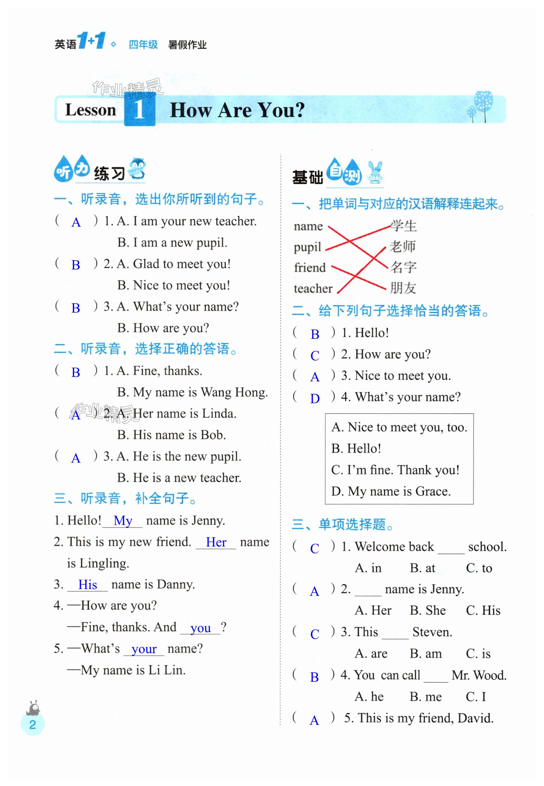 注:目前有些书本章节名称可能整理的还不是很完善,但都是按照顺序排列的,请同学们按照顺序仔细查找。练习册 2025年1+1暑假作业四年级英语 答案主要是用来给同学们做完题方便对答案用的,请勿直接抄袭。