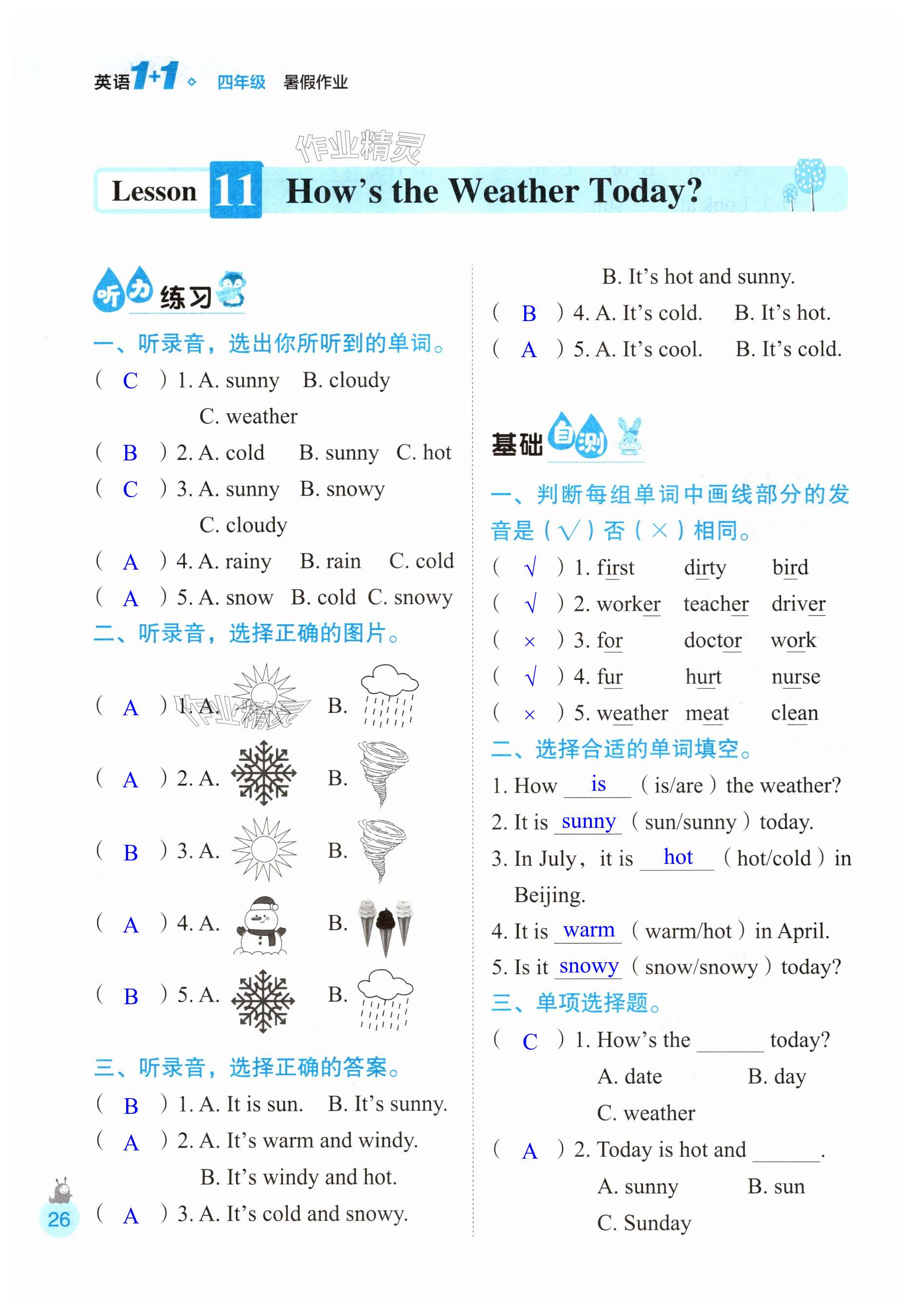 注:目前有些书本章节名称可能整理的还不是很完善,但都是按照顺序排列的,请同学们按照顺序仔细查找。练习册 2025年1+1暑假作业四年级英语 答案主要是用来给同学们做完题方便对答案用的,请勿直接抄袭。