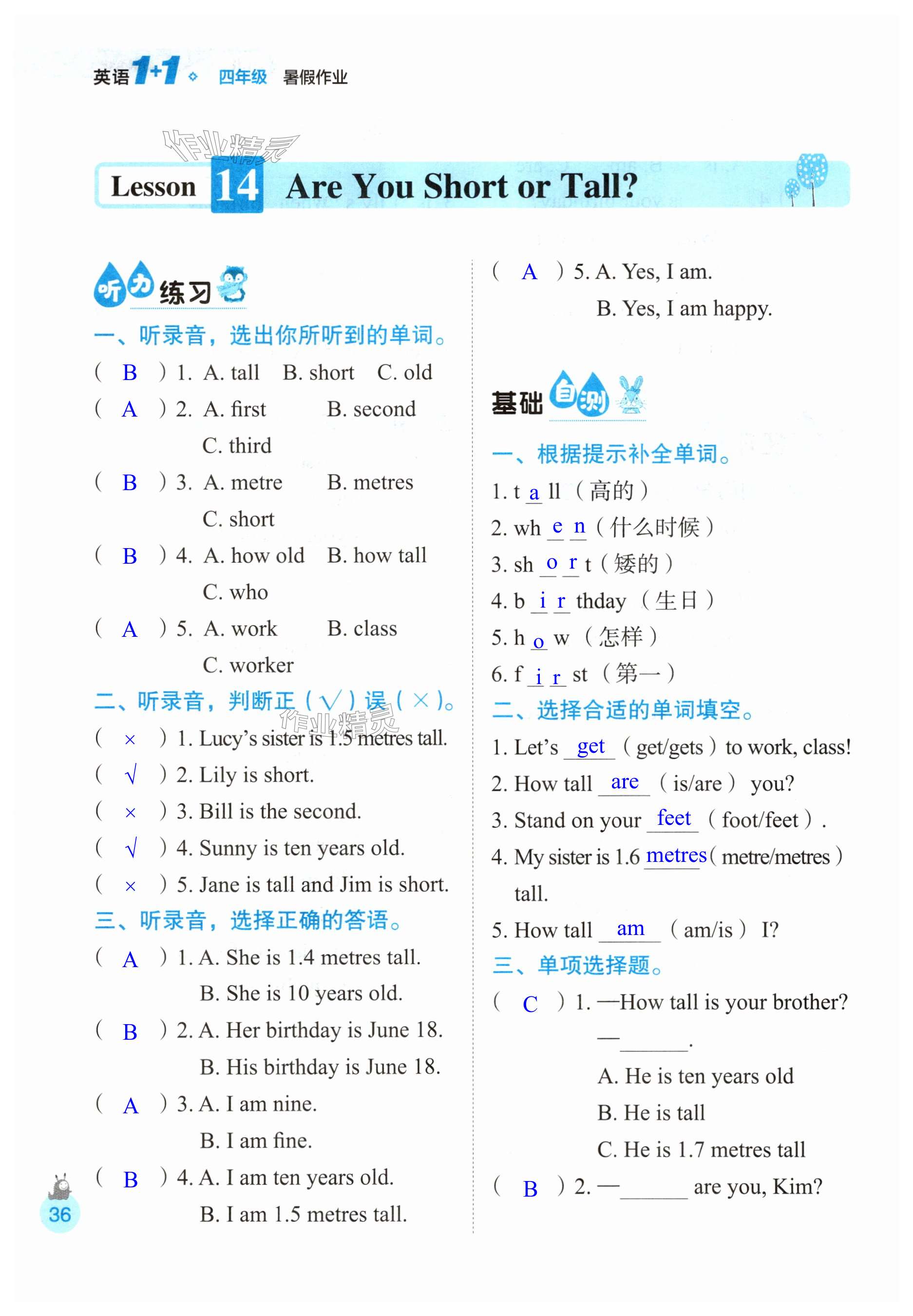 注:目前有些书本章节名称可能整理的还不是很完善,但都是按照顺序排列的,请同学们按照顺序仔细查找。练习册 2025年1+1暑假作业四年级英语 答案主要是用来给同学们做完题方便对答案用的,请勿直接抄袭。