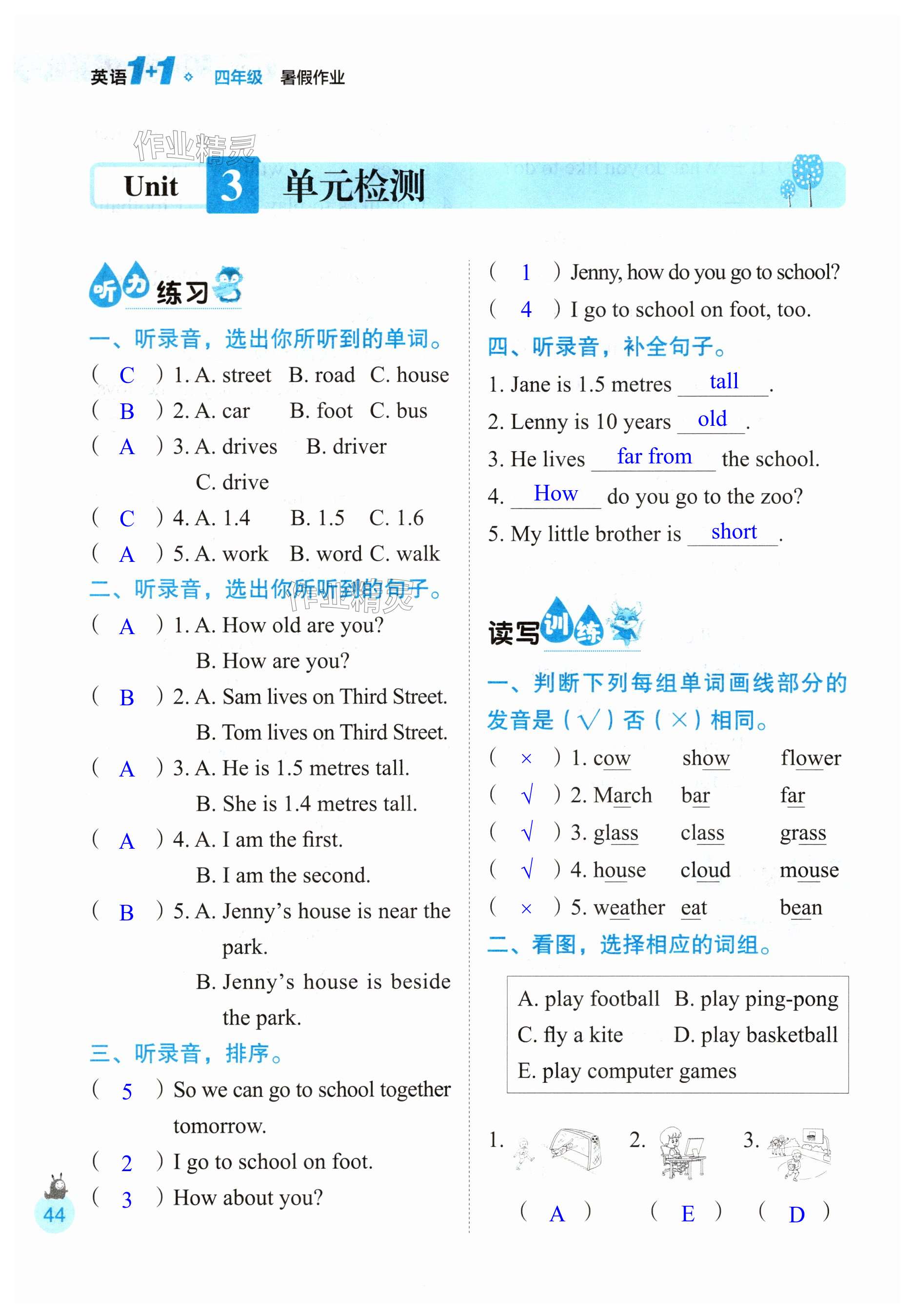 注:目前有些书本章节名称可能整理的还不是很完善,但都是按照顺序排列的,请同学们按照顺序仔细查找。练习册 2025年1+1暑假作业四年级英语 答案主要是用来给同学们做完题方便对答案用的,请勿直接抄袭。