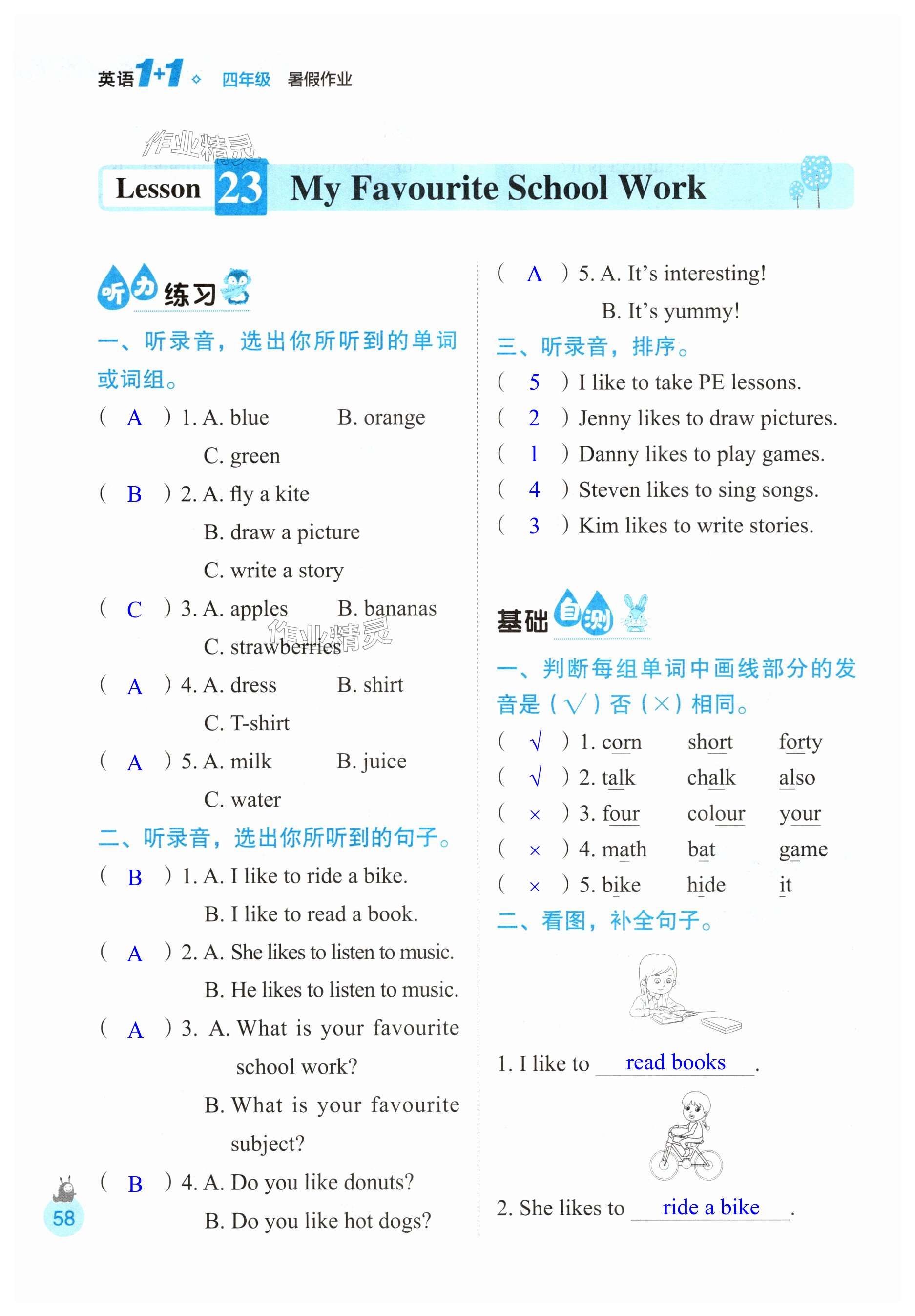 注:目前有些书本章节名称可能整理的还不是很完善,但都是按照顺序排列的,请同学们按照顺序仔细查找。练习册 2025年1+1暑假作业四年级英语 答案主要是用来给同学们做完题方便对答案用的,请勿直接抄袭。