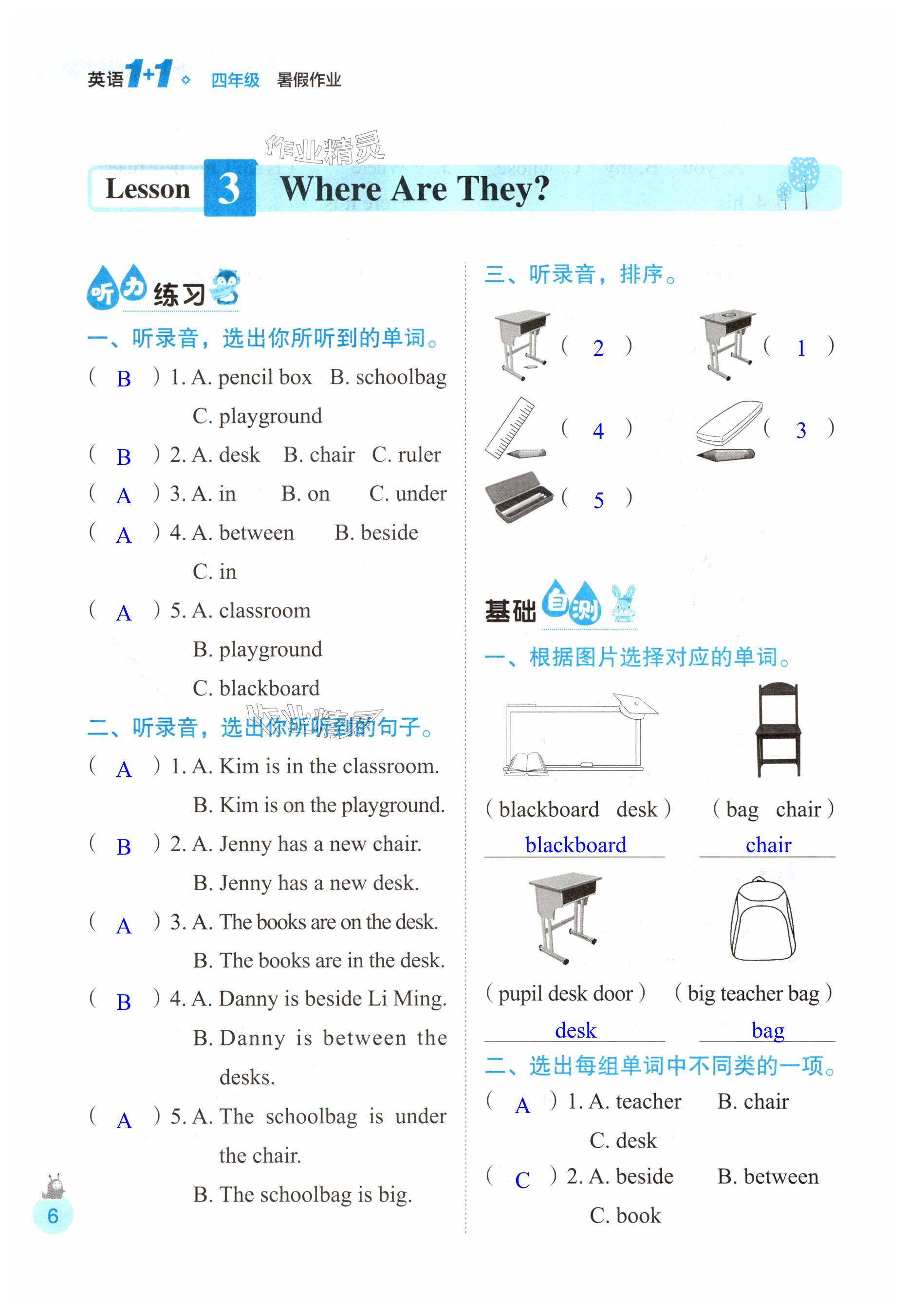 注:目前有些书本章节名称可能整理的还不是很完善,但都是按照顺序排列的,请同学们按照顺序仔细查找。练习册 2025年1+1暑假作业四年级英语 答案主要是用来给同学们做完题方便对答案用的,请勿直接抄袭。