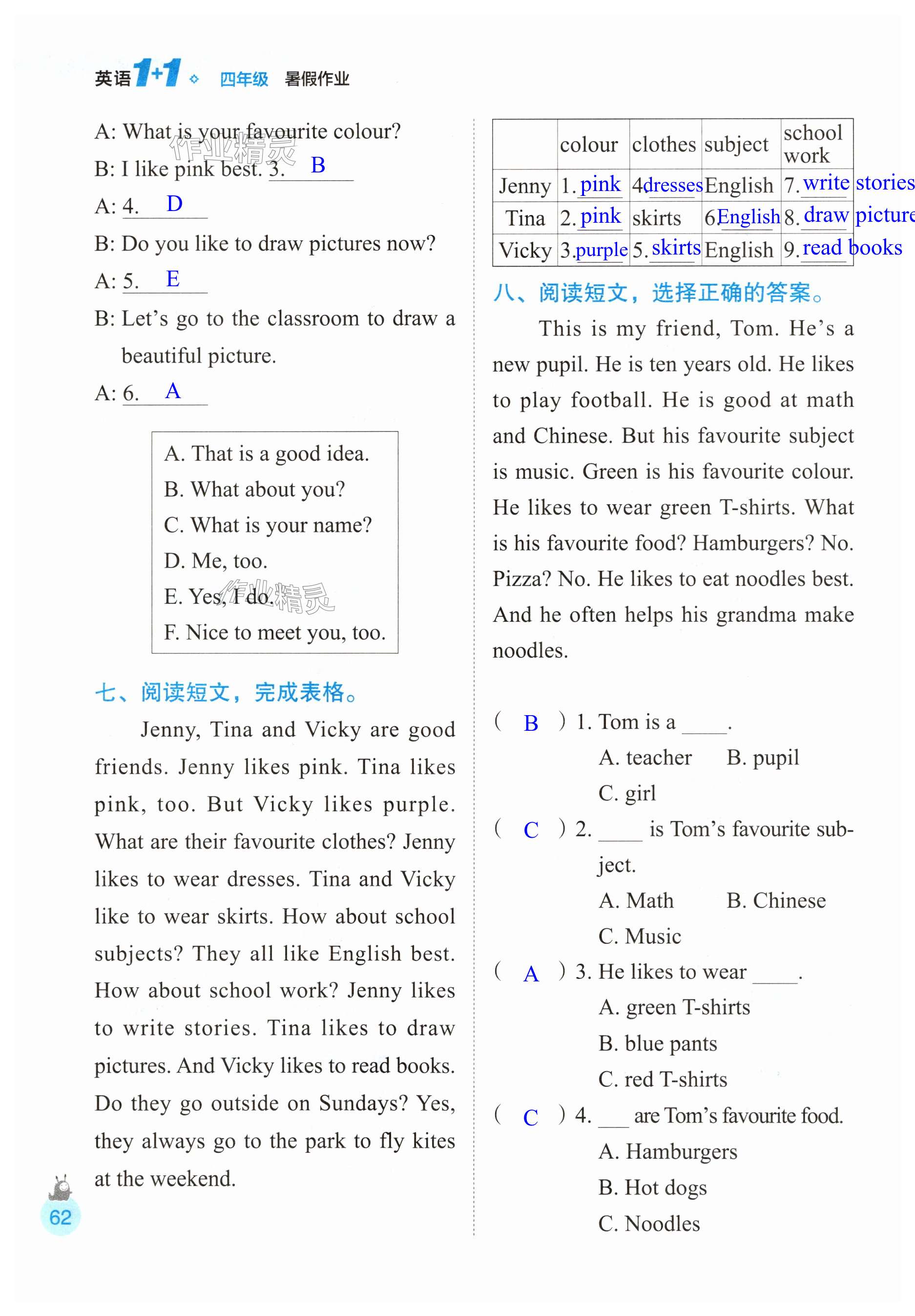 注:目前有些书本章节名称可能整理的还不是很完善,但都是按照顺序排列的,请同学们按照顺序仔细查找。练习册 2025年1+1暑假作业四年级英语 答案主要是用来给同学们做完题方便对答案用的,请勿直接抄袭。