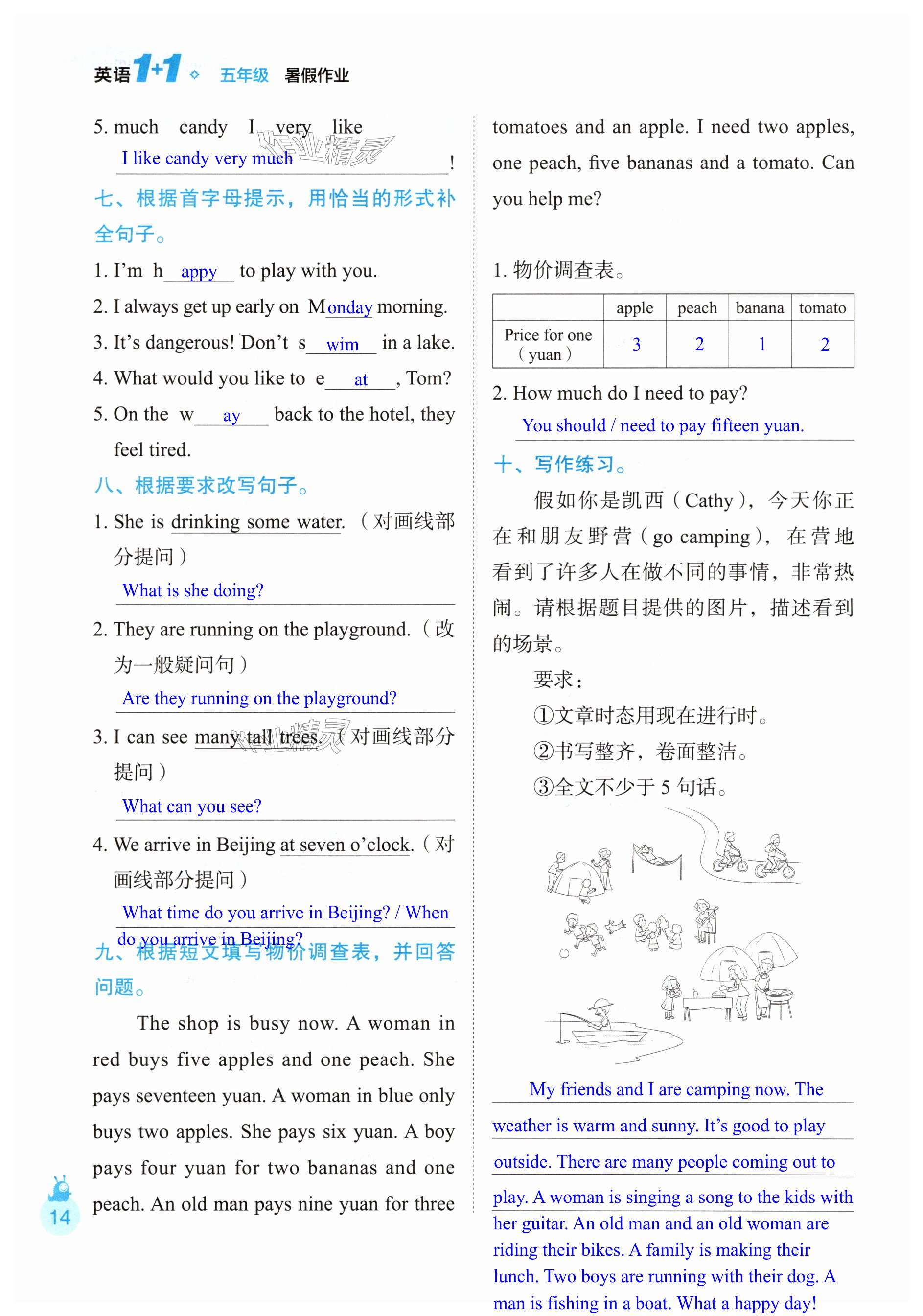 注:目前有些书本章节名称可能整理的还不是很完善,但都是按照顺序排列的,请同学们按照顺序仔细查找。练习册 2025年1+1暑假作业五年级英语 答案主要是用来给同学们做完题方便对答案用的,请勿直接抄袭。