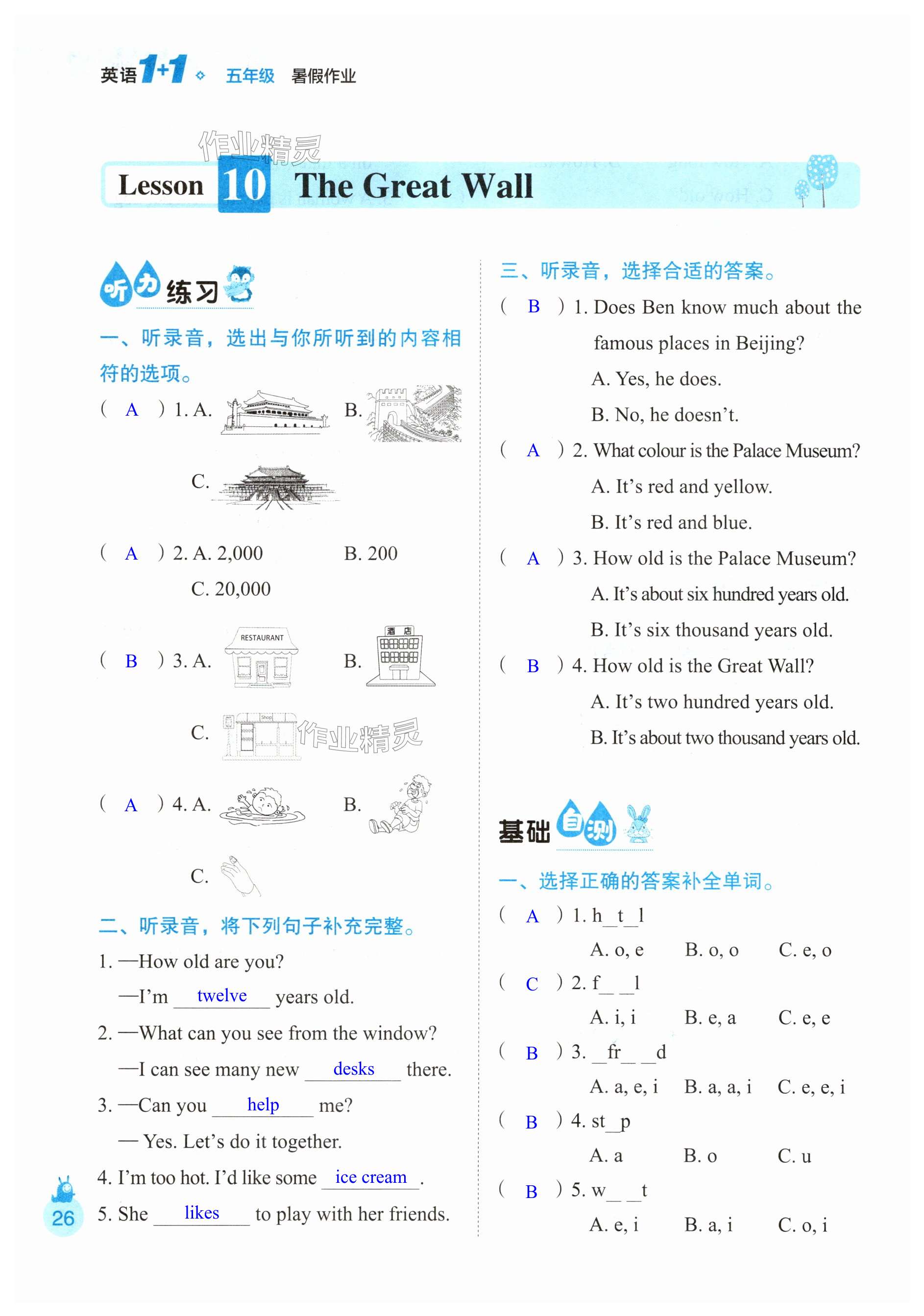 注:目前有些书本章节名称可能整理的还不是很完善,但都是按照顺序排列的,请同学们按照顺序仔细查找。练习册 2025年1+1暑假作业五年级英语 答案主要是用来给同学们做完题方便对答案用的,请勿直接抄袭。
