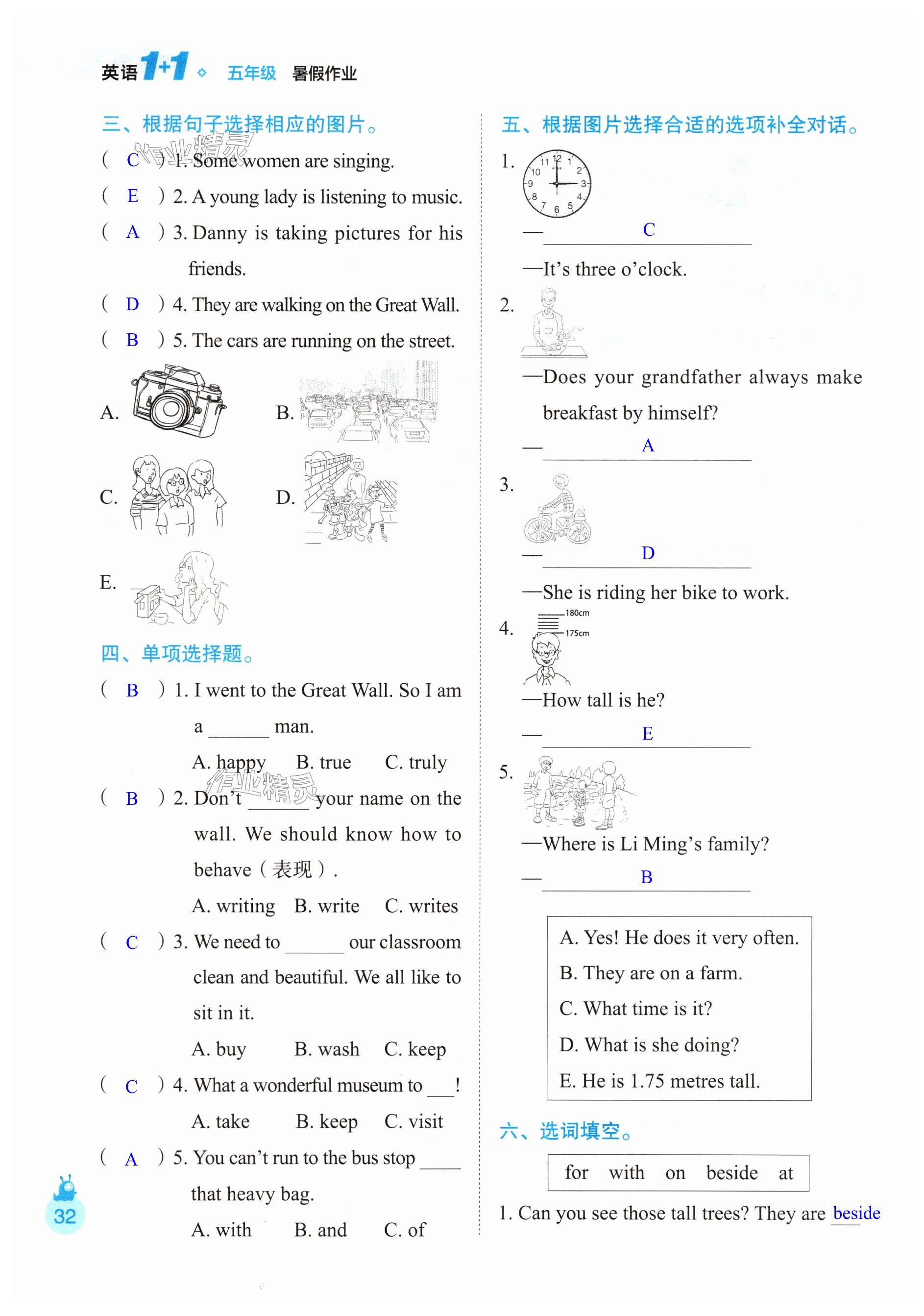 注:目前有些书本章节名称可能整理的还不是很完善,但都是按照顺序排列的,请同学们按照顺序仔细查找。练习册 2025年1+1暑假作业五年级英语 答案主要是用来给同学们做完题方便对答案用的,请勿直接抄袭。