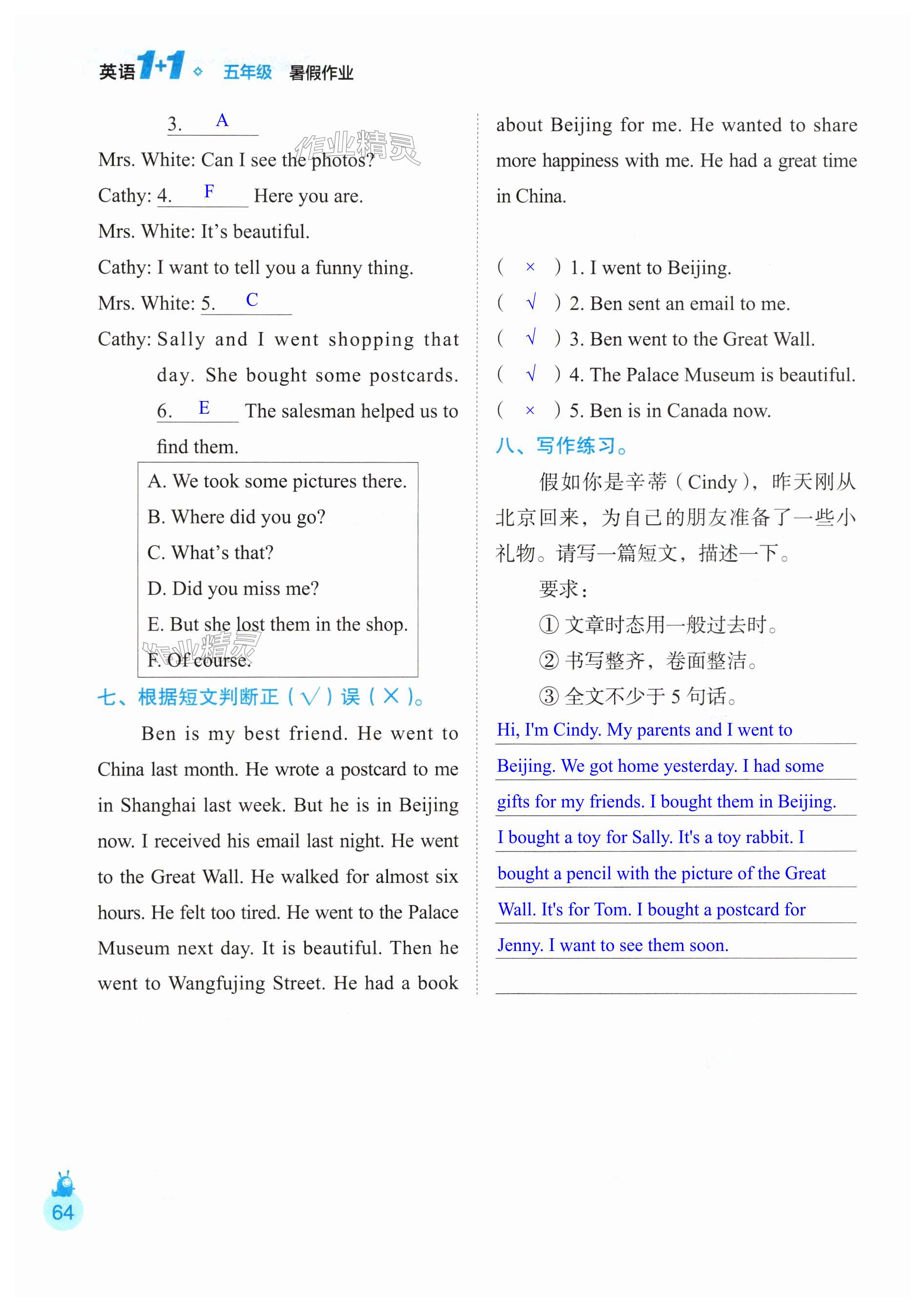 注:目前有些书本章节名称可能整理的还不是很完善,但都是按照顺序排列的,请同学们按照顺序仔细查找。练习册 2025年1+1暑假作业五年级英语 答案主要是用来给同学们做完题方便对答案用的,请勿直接抄袭。