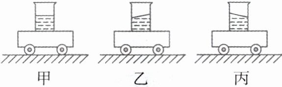 的形状;若此时小车突然刹车减速,烧杯中的水面应是图乙