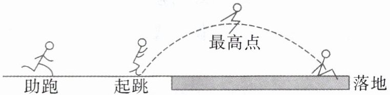 1. 如图所示,跳远运动员在比赛过程中要先助跑,再起跳至最高点,最终落地。在这一过程中,下列说法正确的是(