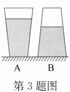 3. 如图所示是一杯密封奶茶正放、倒放在水平桌面上的情景,两次情景中液体对杯底的压强分别为$p_{A}和p_{B}$,液体对杯底的压力分别为$F_{A}和F_{B}$,则有$p_{A}$