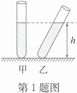 1. 如图所示,甲、乙两只完全相同的试管内装有质量相等的不同液体,甲试管竖直放置,乙试管倾斜放置,两试管液面相平。设液体对试管底部的压强分别为$p_{甲}和p_{乙}$,则下列判断正确的是(