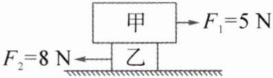 2. 甲、乙两物体重叠并置于水平面上,当它们分别受到5N和8N的水平拉力时保持静止,如图所示,已知甲、乙的底面积分别为$200cm^2、$$100cm^2;$甲、乙的重力大小分别为10N、20N。下列说法正确的是(
